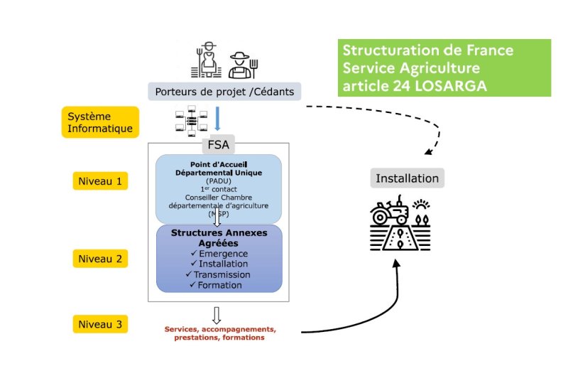• Niveau 1 (Point d’Accueil) : Cette fonction est exclusivement assurée par les Chambres d’agriculture. Elles sont le point d’entrée unique pour tous les usagers.